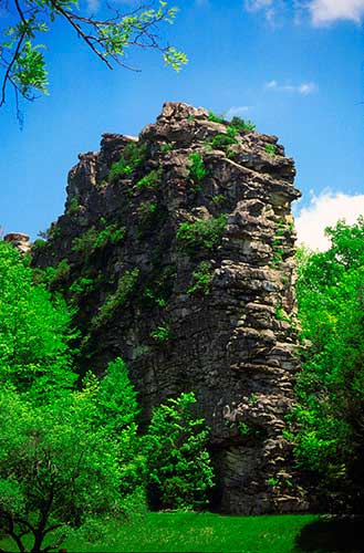 Towering above the rugged mountains of southeastern West Virginia, Pinnacle Rock is an unusual sandstone formation reaching 3,100 feet above sea level. This park provides a relaxing picnic area in an unusual scenic setting.